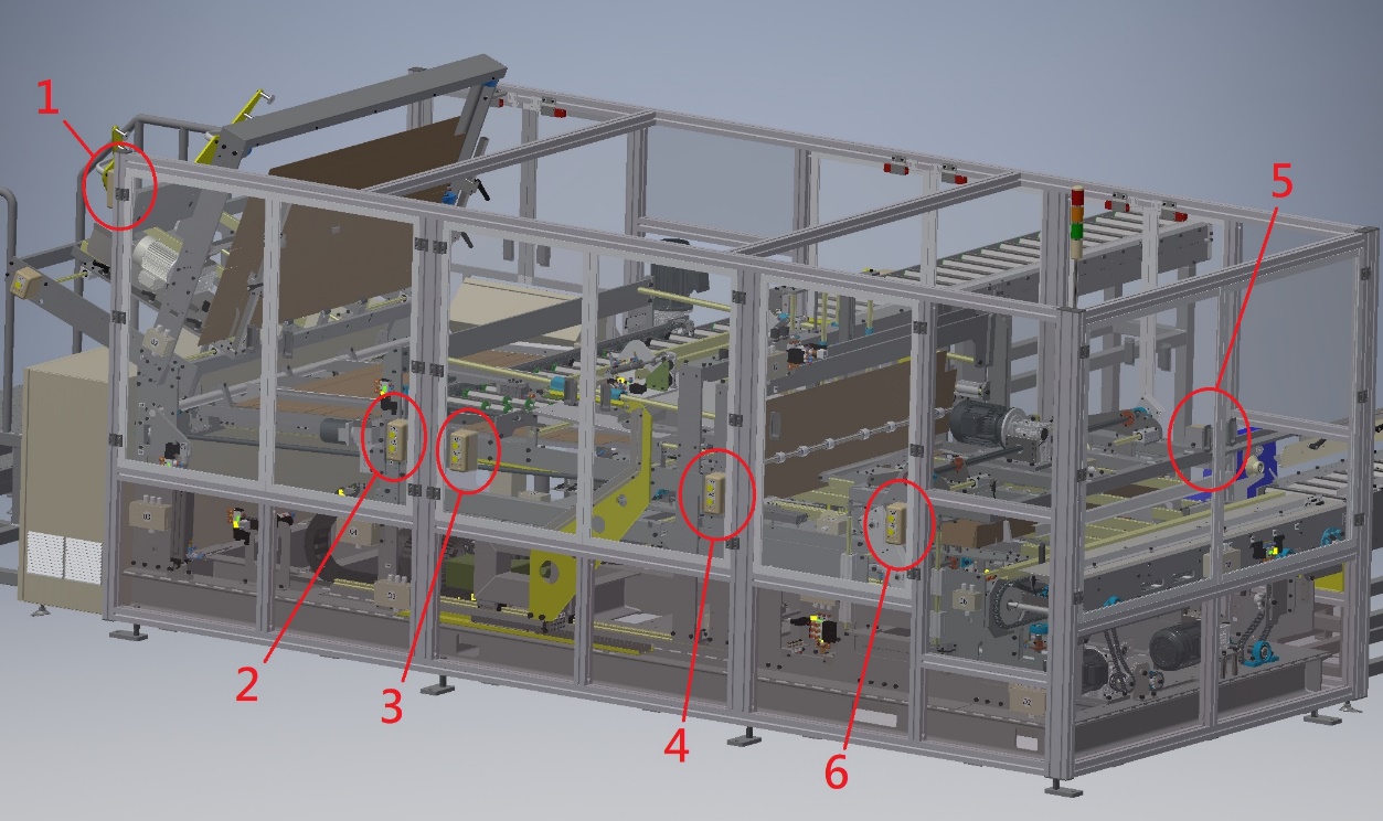 | 機械設備有二段以上連結時,配線以中繼箱連接。而一般線槽內之配線、馬達動力線等皆由控制盤一線到底。 |